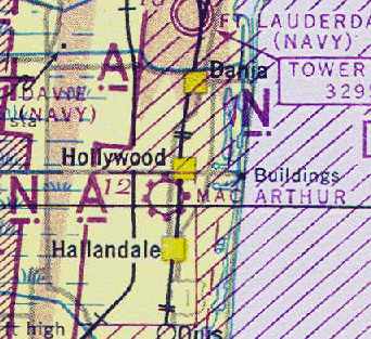 The last aeronautical chart depiction which has been located of Hollywood Airpark was on the July 1953 Miami Sectional Chart.