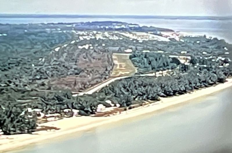 A borrow pond was dredged at the north end of the strip & provided fill dirt to widen the road into a runway which ran parallel to the beach.