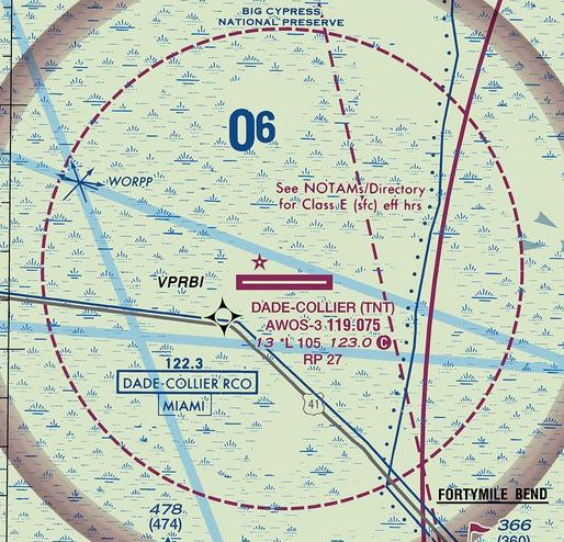 The 2016 Miami Terminal Aeronautical Chart depicted Dade-Collier as a public-use airport having a single 10,500' paved runway.