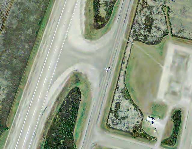 The crash site is in the muddy grassy area in the northeast corner about 50 yards from the runway intersection.