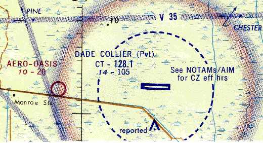 It depicted Dade Collier as a private airfield having a single 10,500' paved runway & a control tower.