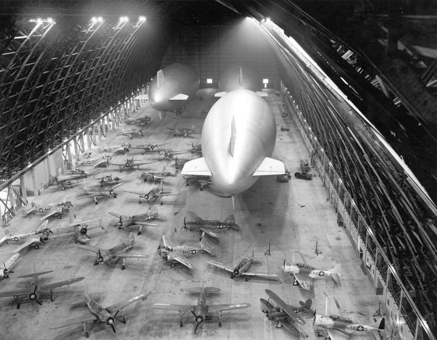 and jet hangar maintenance was still being performed beneath the airships in Hangar 1.
