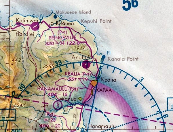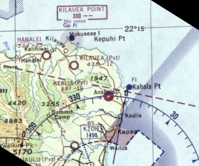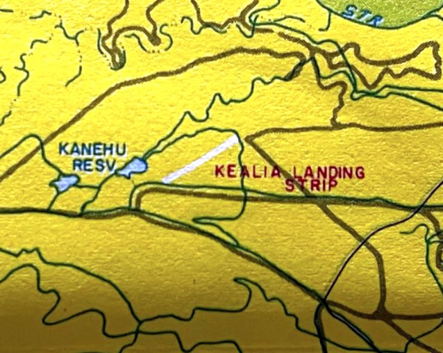 The earliest aeronautical chart depiction which has been located of Kealia Landing Strip was on the December 1964 Hawaiian Islands Sectional Chart.