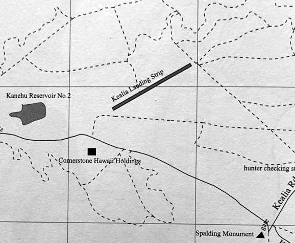A 2010 map (courtesy of Kevin Walsh) depicted Kealia Landing Strip as having a single northeast/southwest runway.