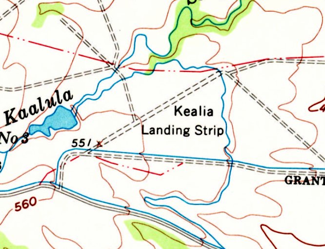 The earliest depiction which has been located of Kealia Landing Strip was on the 1963 USGS topo map,