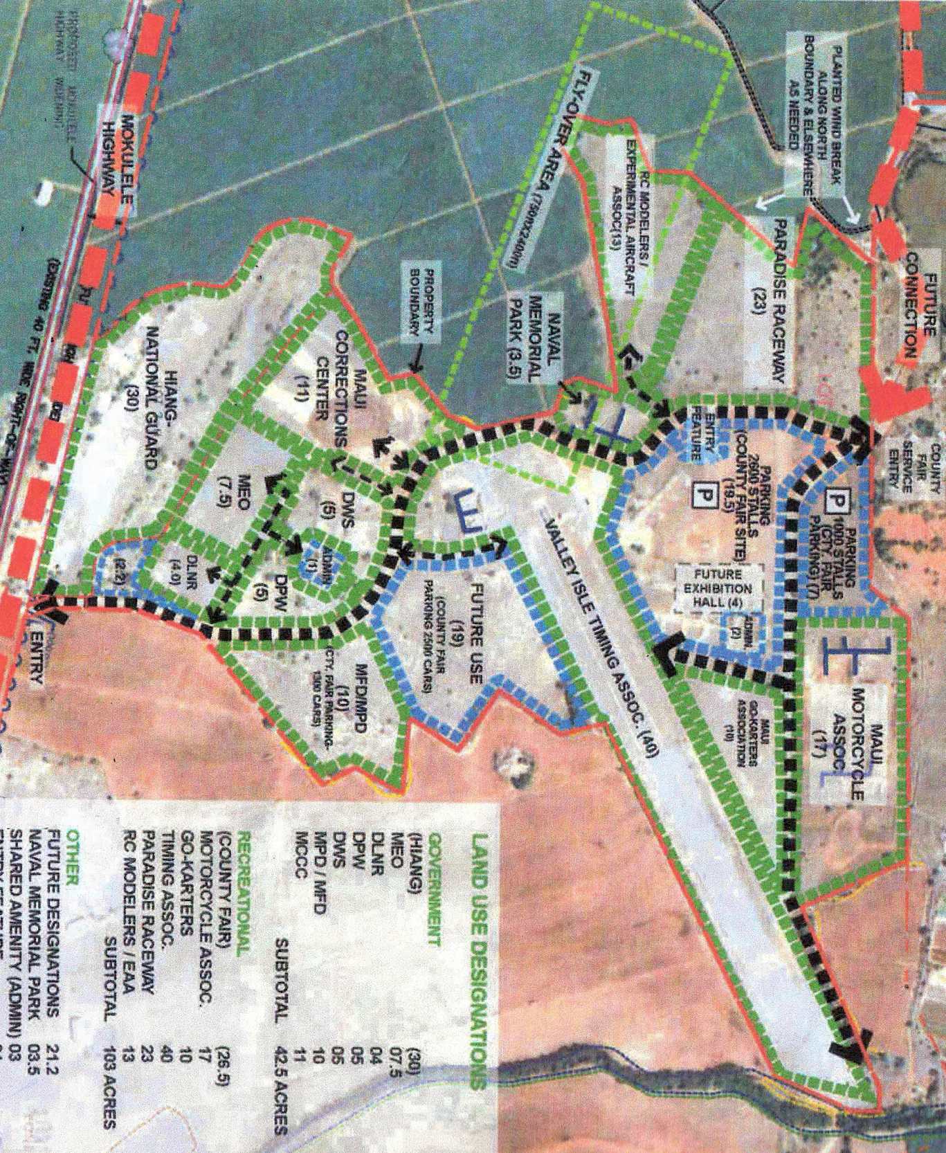 including a raceway, county fair grounds, HI National Guard, Maui correctional center,