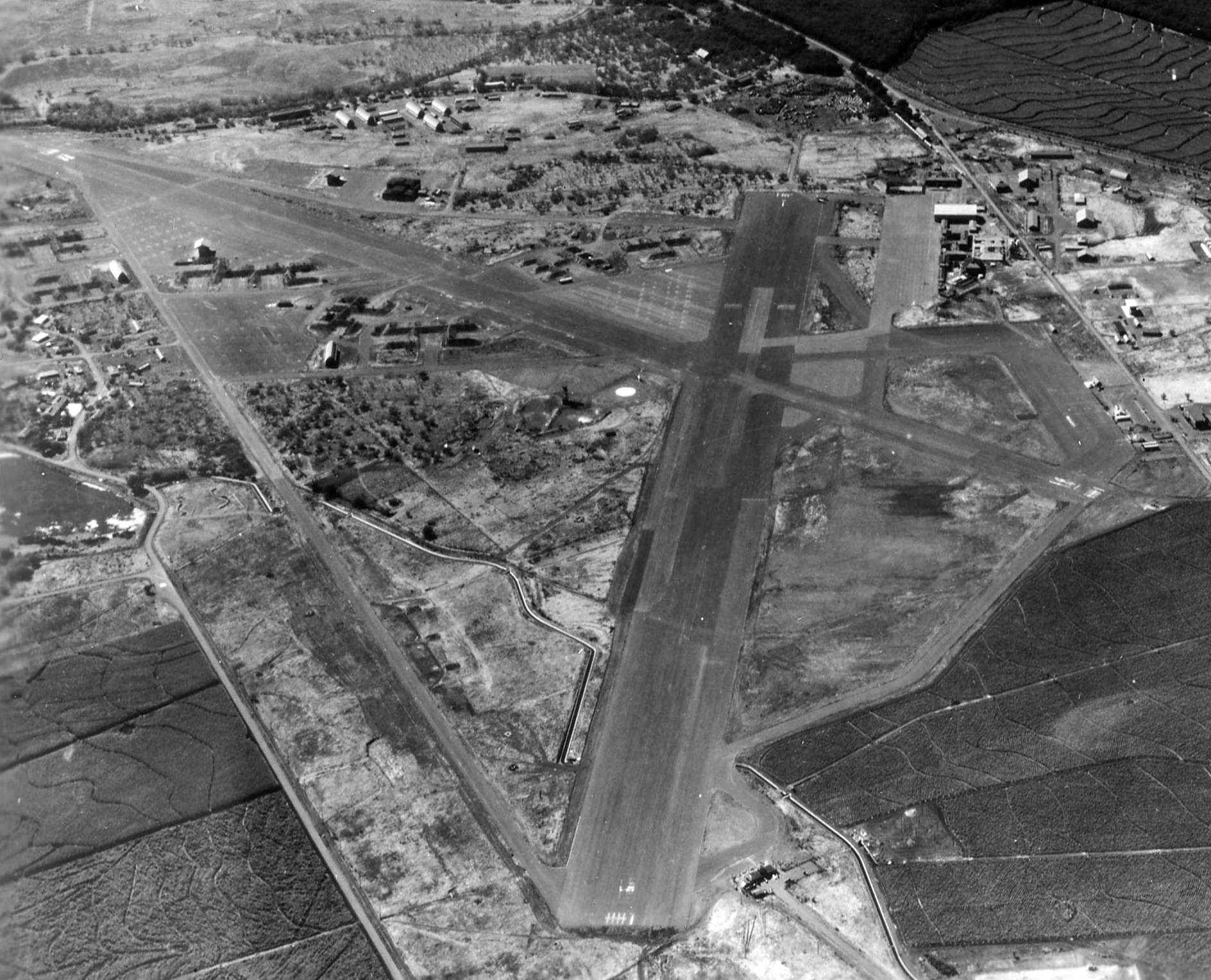 A 1948 USAF aerial view looking south depicted Puunene Airport devoid of any aircraft (from the Digital Archives of Hawaiʻi).