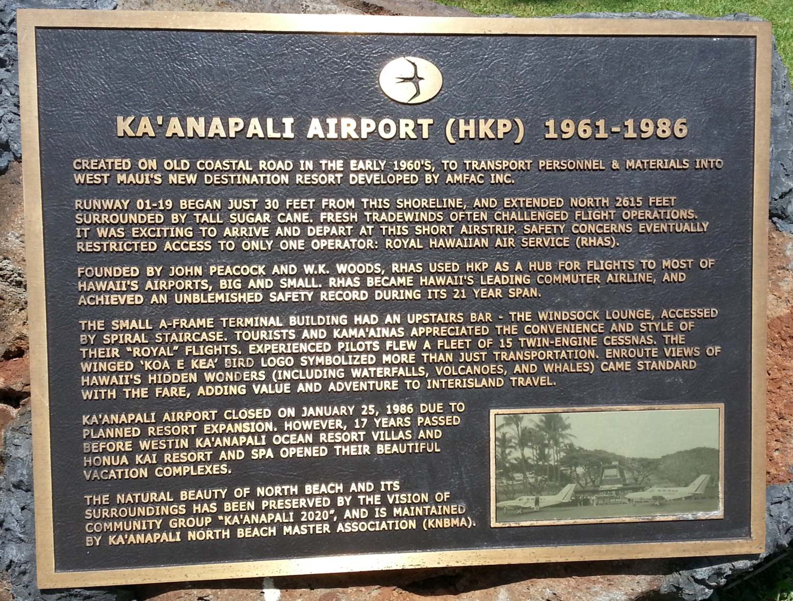 A pre-2017 photo of the plaque commemorating Ka'anapali Airport (courtesy of Kevin Walsh).