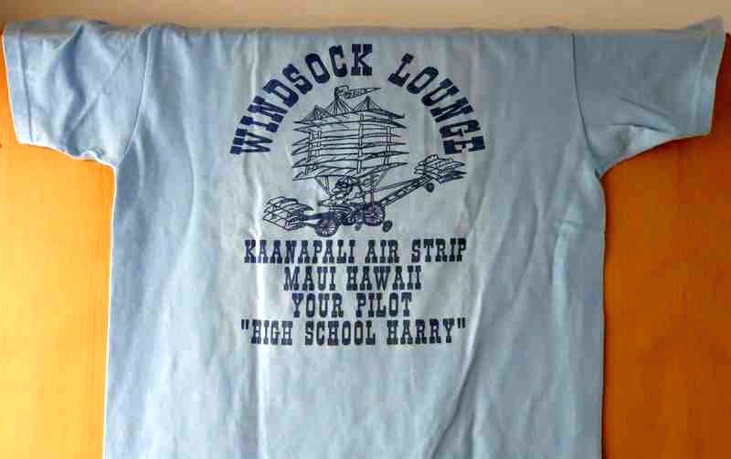 An undated T-shirt commemorating the “Windsock Lounge, Kaanapali Air Strip” (courtesy of Mike Kmetz).