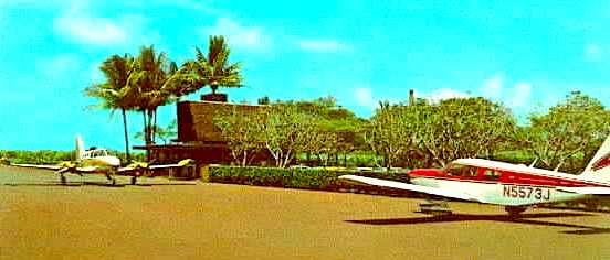 An undated (circa 1970s?) postcard of a Twin Commander in front of Kaanapali Airport's terminal building (courtesy of Kevin Walsh).