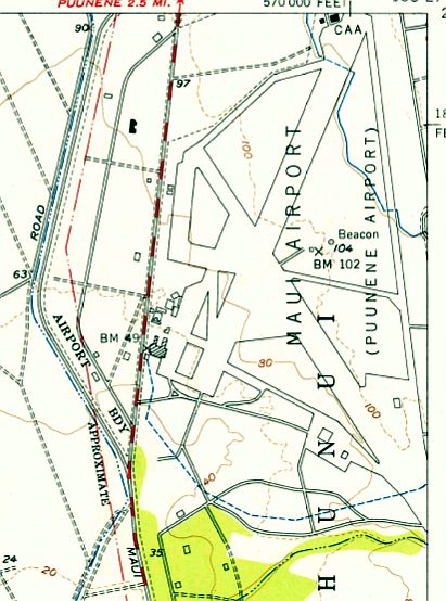 The airfield at Puunene was labeled as Maui Airport on the 1951 USGS topo map.