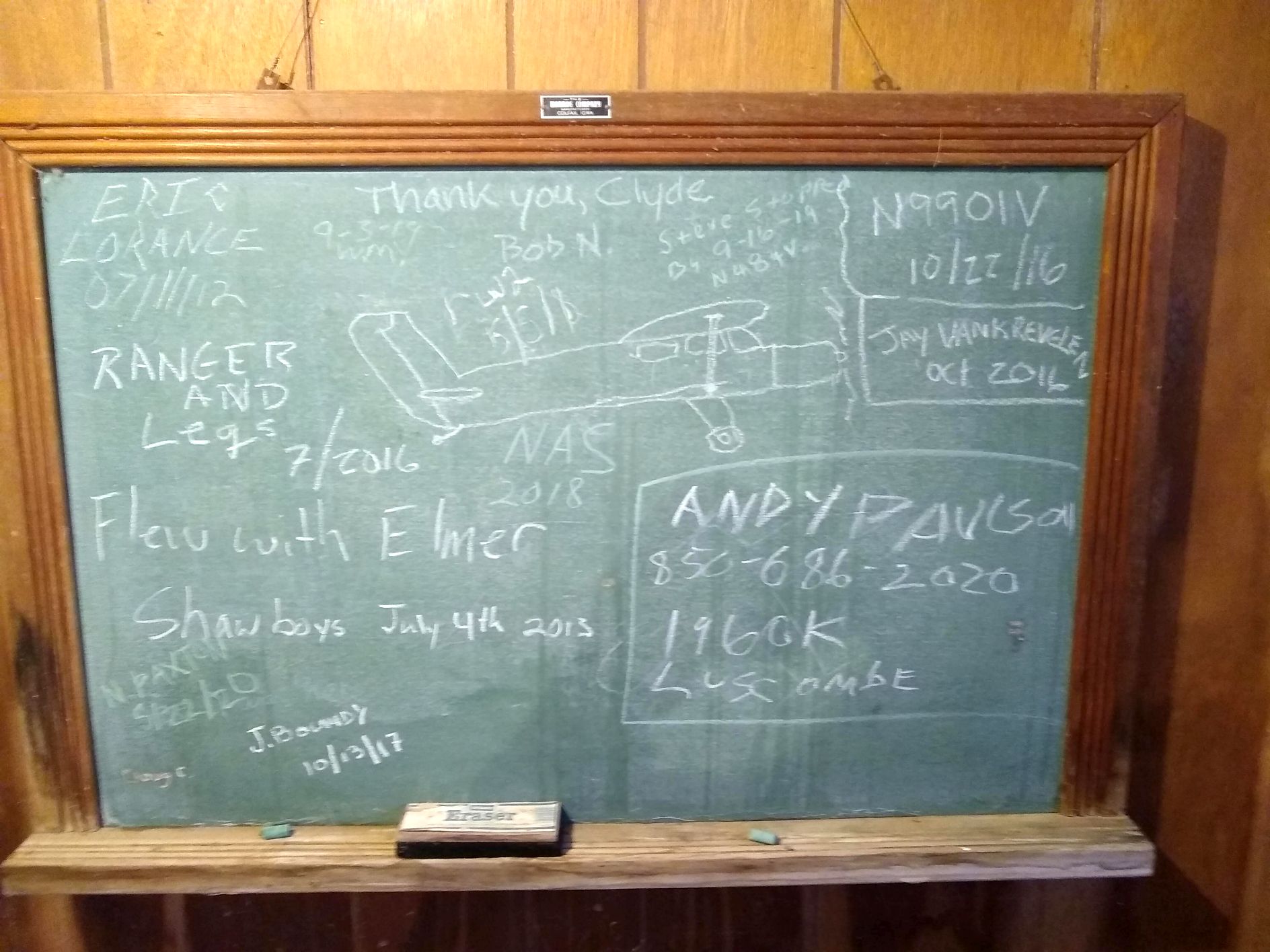 A 5/22/20 photo by Nick Paxton of the chalkboard inside Monona Airport's pilot's lounge.