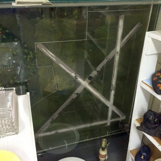 I would estimate it is about 5' x 5'. Very detailed, as if a model railroader made it. It's in a case, enclosed under Plexiglas”