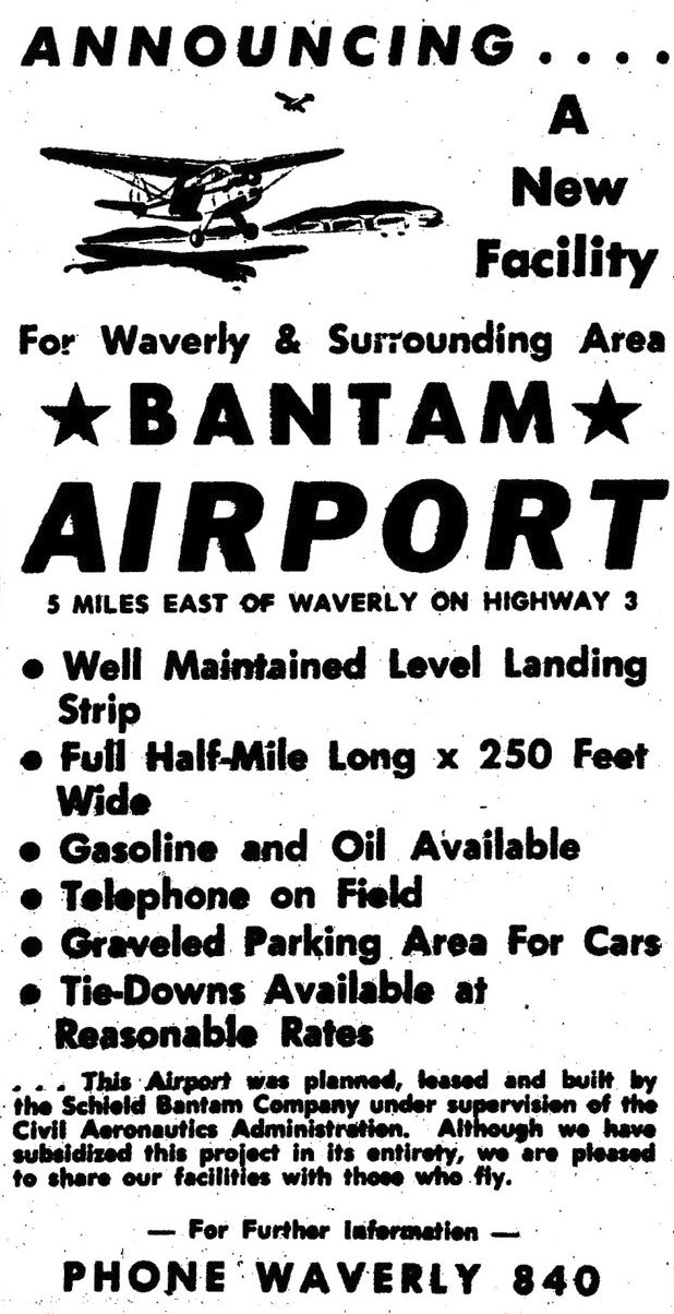 It described Bantam Airport as having a “half-mile long” runway, subsidized entirely bu the Shield Bantam Company, but available for public use.