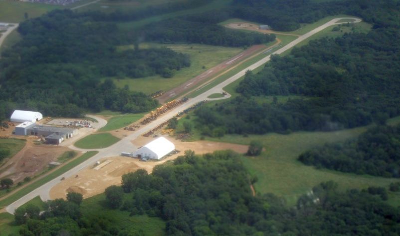 It showed a single northwest/southeast runway under construction, with a single building on the northeast side.