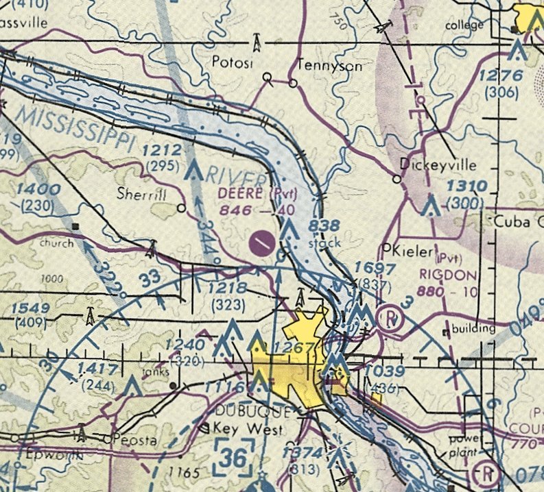 Monona Airport was not yet depicted on the 1970 Dubuque Sectional Chart.