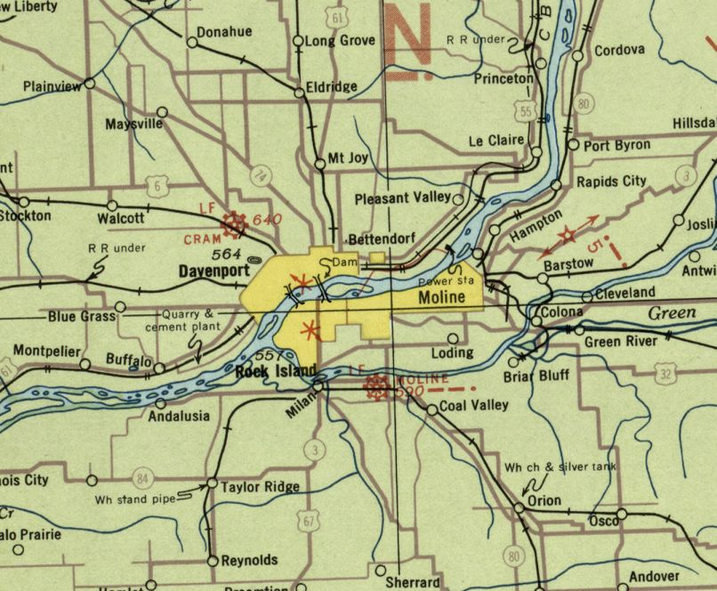 This private airfield was apparently built for the use of the John Deere Dubuque Works, which is just to the east of the airfield.