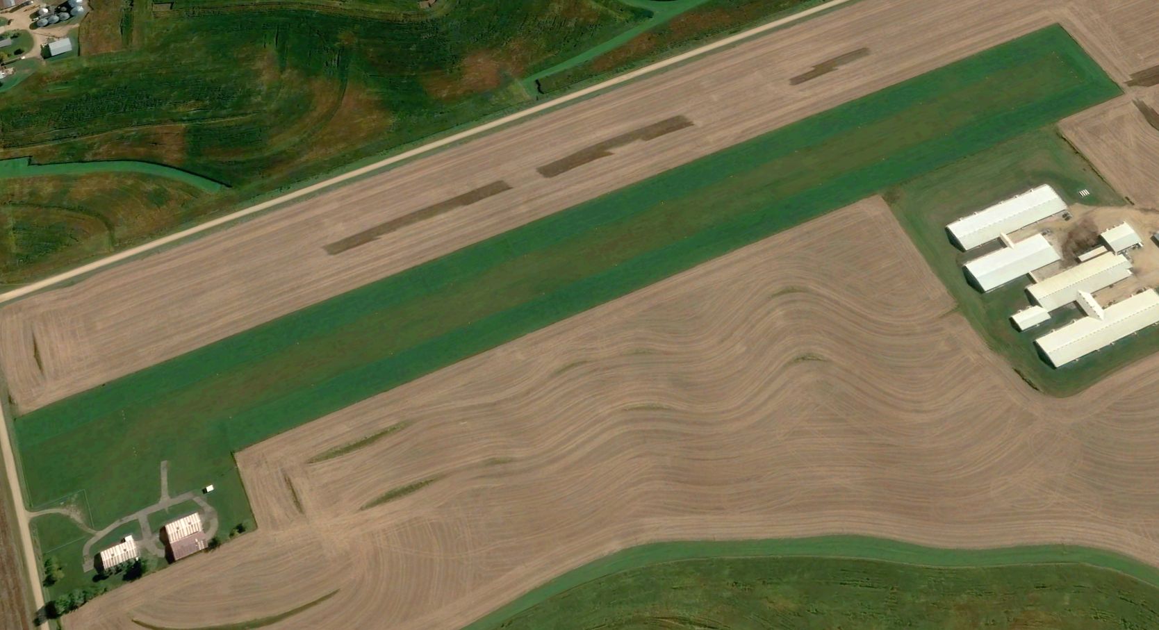 Nick Williams reported, “K Field was used by private pilots for decades, at least until the mid-1980s when the grass strip was planted in corn & soybeans.”