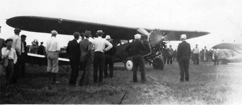 Early in the fall of 1928 work was completed on a landing strip. In 1929 boundary lights & a beacon light were placed on the field.”
