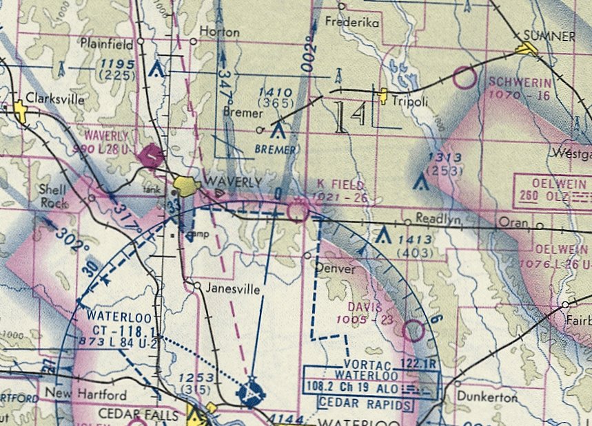 was on the June 1955 Des Moines Sectional Chart (courtesy of Chris Kennedy).
