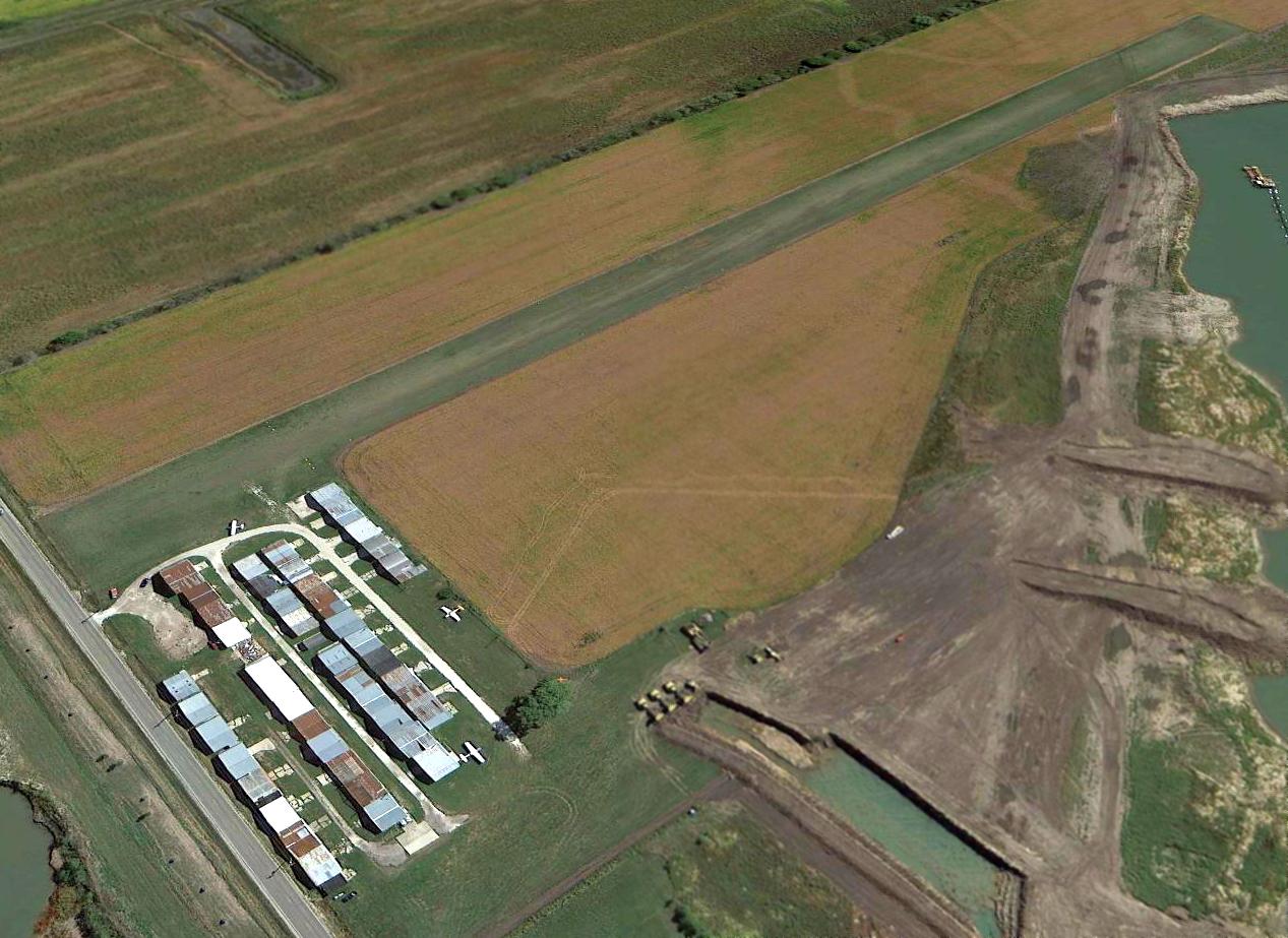A 2015 aerial view looking east shows the Deere Landing Strip remained intact.