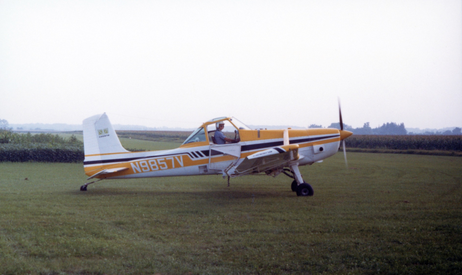 A circa 1980s photo by Nick Williams looking southwest at a Cessna AgWagon at K Field.