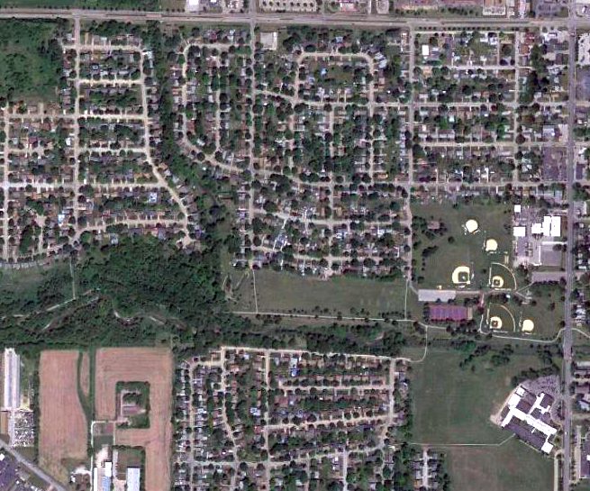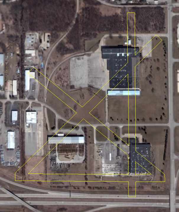 A 2002 aerial photo of the Deere airfield, from the Iowa Geographic Map Server (via Chris Kennedy).