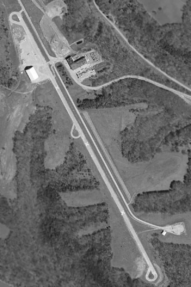 A single building sat to the east of the runway, but it was not apparent if this was a hangar.