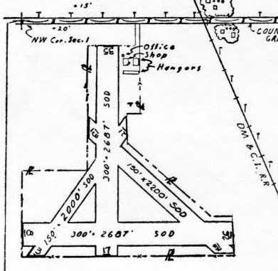 The 1948 Iowa Airport Directory (courtesy of Chris Kennedy) depicted Hunter Field as having 4 gravel & turf runways,