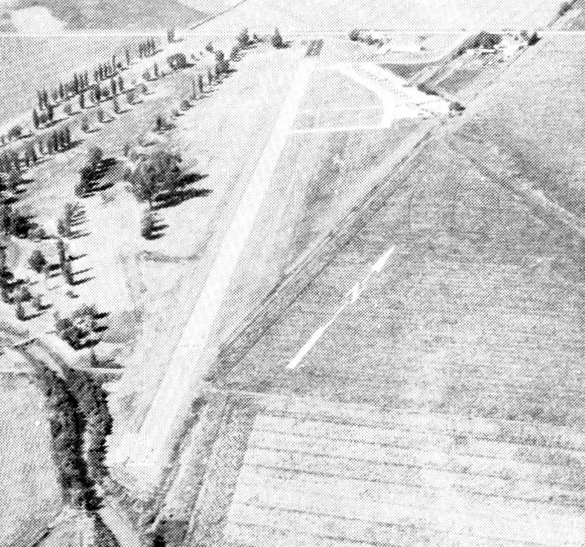 The earliest photo which is available of the Linby airfield was a 1943 aerial view looking north (courtesy of Dan Quinn).