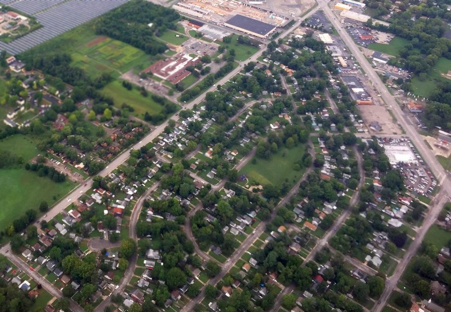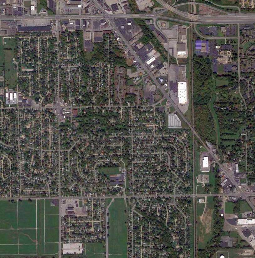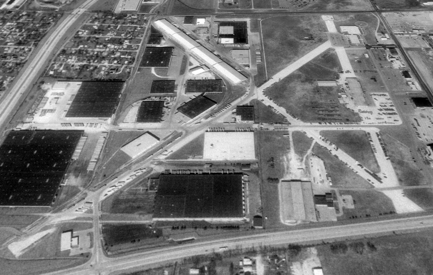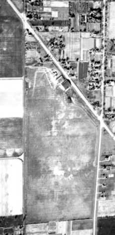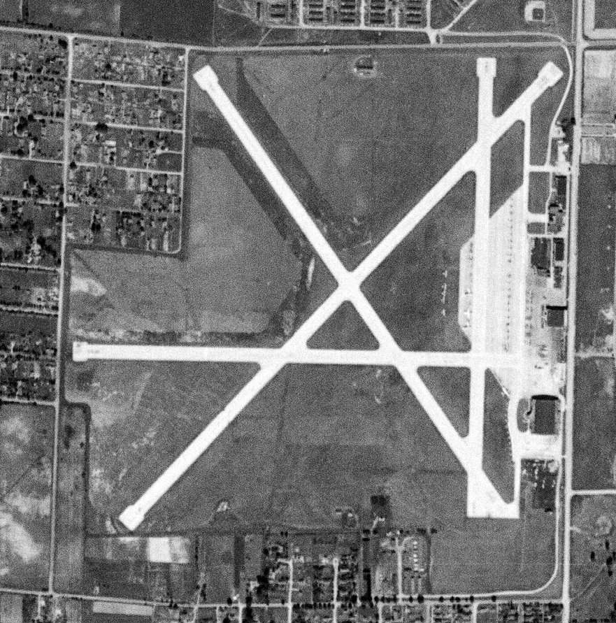 A 1992 USGS aerial view looking north showed warehouses had been built over significant portions of the Stout Field runways,