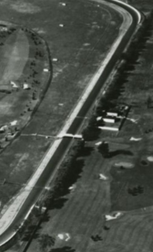 Eric Lawrence observed, “You can even make out the fence behind them separating them from the newly-built golf course. They were used to store the large machinery needed to maintain the track surface.”