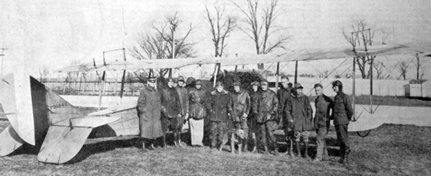 A circa 1918 photo of a group in front of a JN-4 Jenny at the Indianapolis Motor Speedway (courtesy of Eric Lawrence).