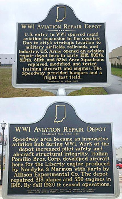 According to a historical marker at the Indianapolis Motor Speedway, “U.S. entry in WWI spurred rapid aviation expansion in the country.