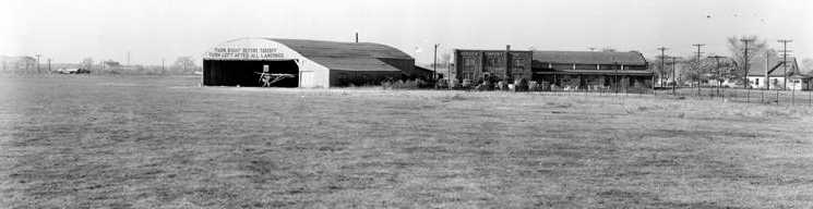 A 1936 aerial photo of the Indianapolis Motor Speedway taken during the 1936 race (courtesy of Eric Lawrence) showed the 2 hangars at the midpoint of the backstretch on the east side of the racetrack.