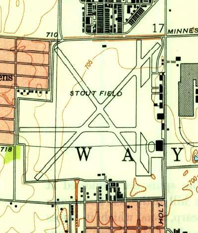 The 1948 USGS topo map depicted Stout Field as having 4 paved runways, and a ramp & buildings along the east side.
