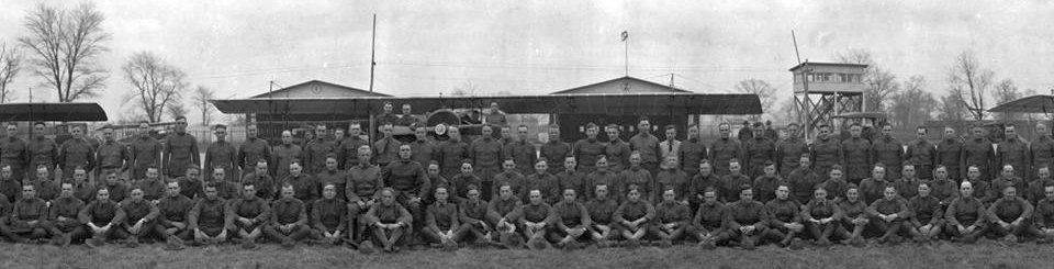 A December 1918 photo of the 821st Aero Squadron at the Indianapolis Motor Speedway Aviation Repair Depot (courtesy of David Parker).