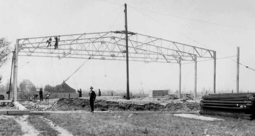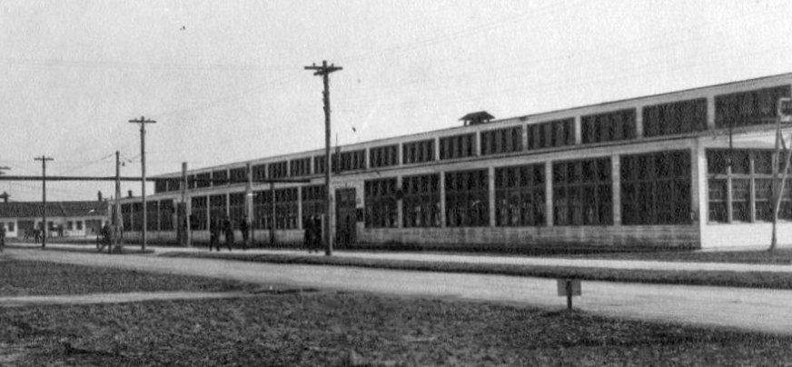 1918 photo of the Indianapolis Motor Speedway Aviation Repair Depot
