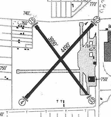 The field was depicted as having only 2 active runways (4,490' Runway 4/22 & 3,890' Runway 15/33).