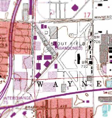 The 1986 USGS topo map still depicted several remaining runways at “Stout Field (Abandoned)”.