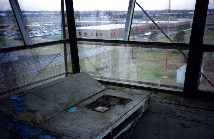 A 1994 photo by Lou Thole showing the view from inside Stout Field's former control tower.