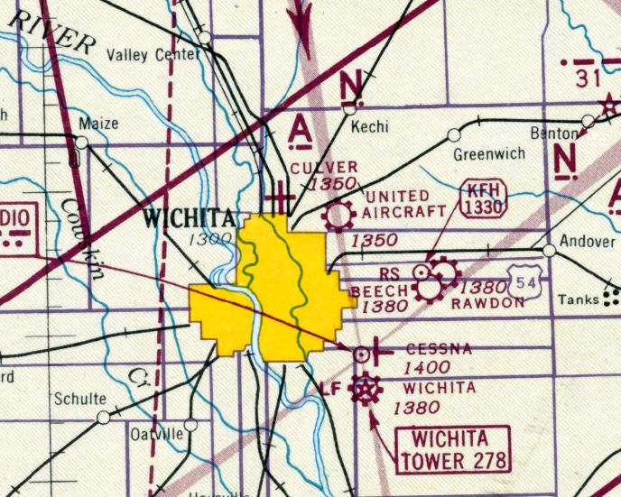 The last aeronautical chart depiction which has been located of Culver Airport was on the March 1946 Wichita Sectional Chart.