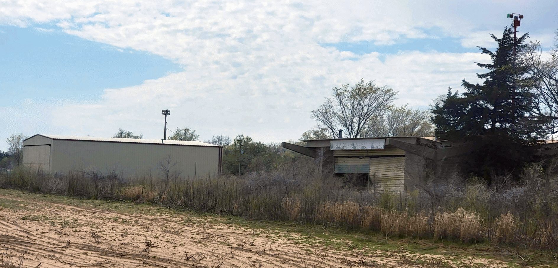 A 2023 photo of a building which remains at the site of Clothier Landing Field.