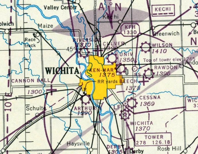 Ken-Mar Airport was depicted on the March 1946 Wichita Sectional Chart.