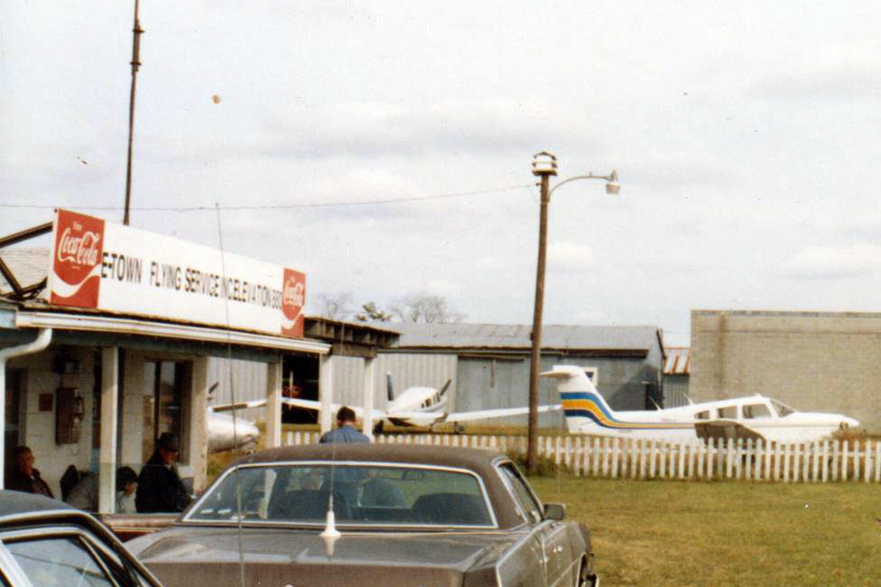 A circa mid-1970s photo of the “E-Town Flying Service” office at Ben Floyd Field (courtesy of Kenn Lawson).