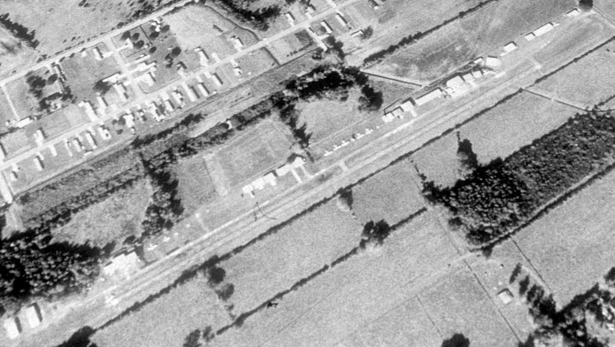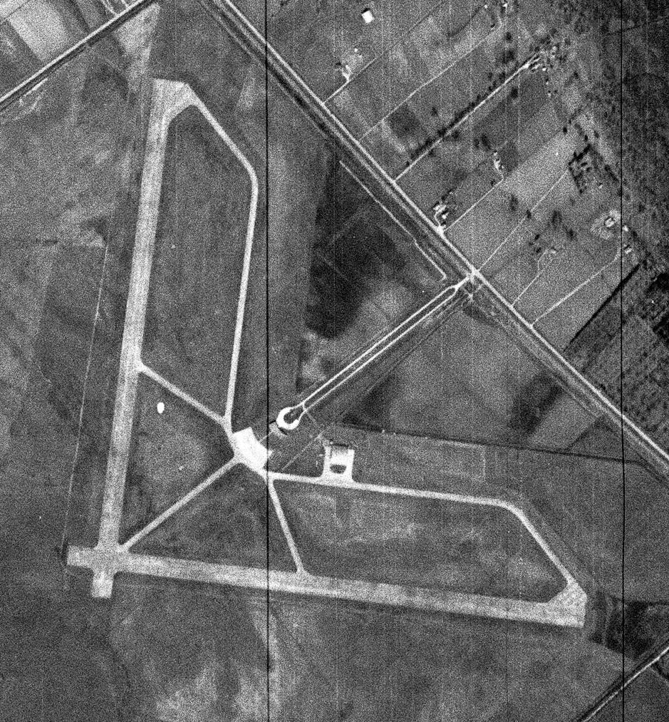 as a 1998 aerial view showed the runway & hangars were still intact but the numerous aircraft seen parked outside on the 1989 photo were reduced to only a single aircraft.