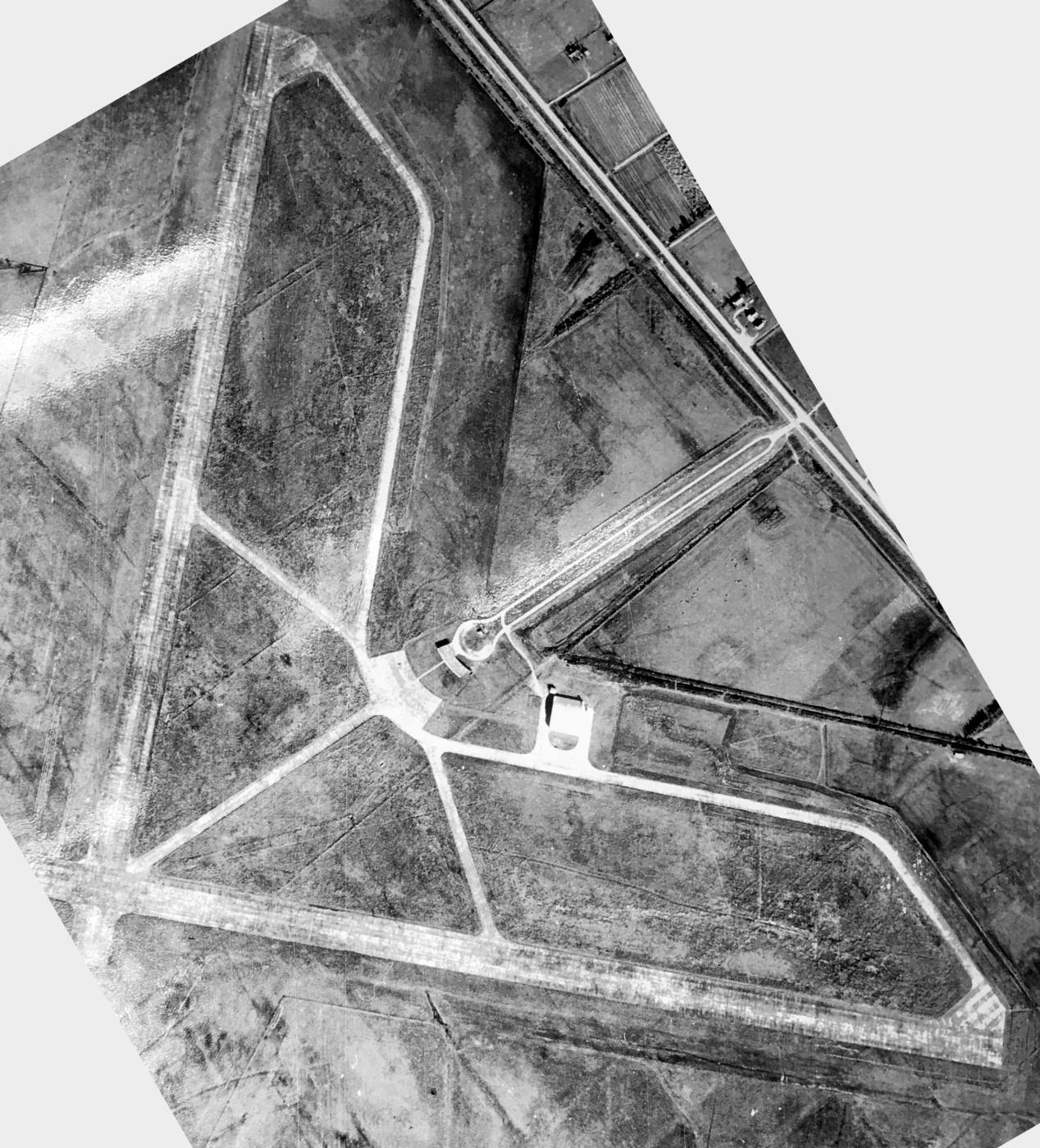 was a 1/20/75 USGS aerial view, showing a large number of light aircraft parked on the west side of the field.