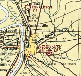 "Baton Rouge" was depicted as a municipal airport on the 1945 New Orleans Sectional Chart (courtesy of John Voss).