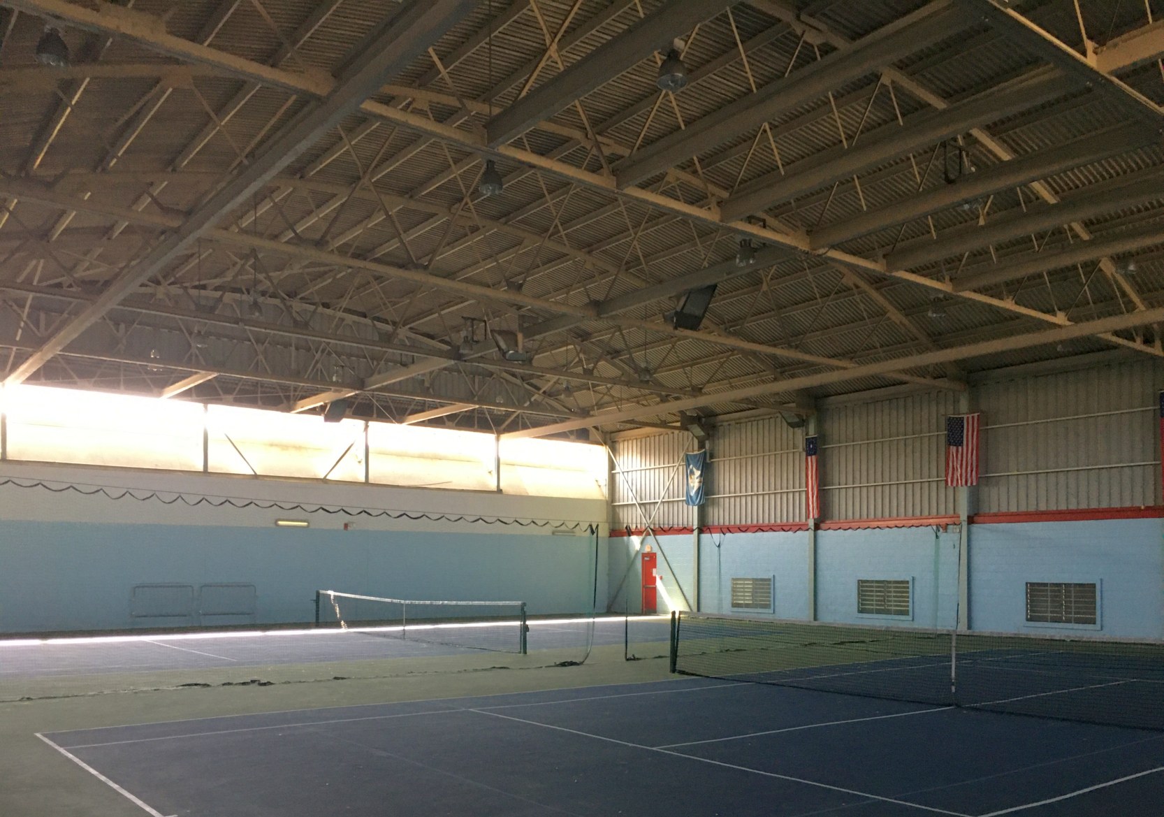 A 2/9/21 photo by Buck Abbey of the interior of the former Baton Rouge Downtown Airport hangar, reused as a tennis center.