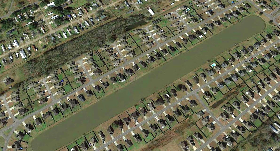 A 2007 photo showed houses had started to be built over the Babin Landing Strip site.